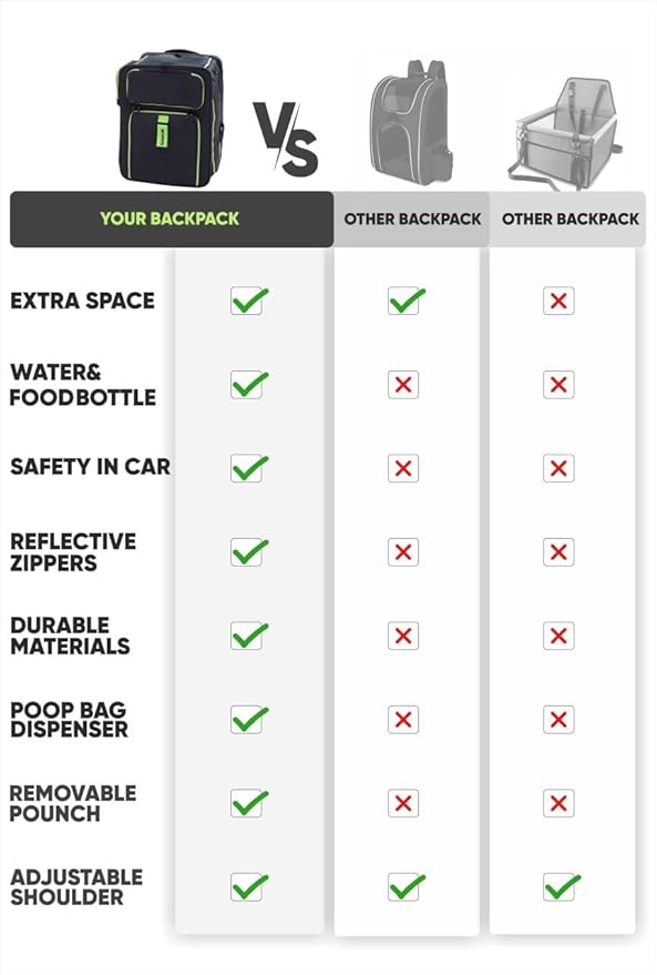 - ALL-WEATHER COMFORT Adjustable mesh and ventilation flaps in our puppy backpack ensure your pet's comfort in any weather, from city walks to adventures.