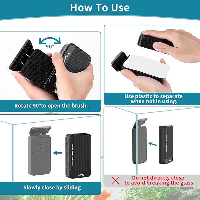 - AUTOMATIC FLOATING DESIGN: Our magnetic fish tank cleaner is cleverly designed with an automatic floating function. After cleaning the fish tank, when you remove the outer brush, the inner brush will automatically float to the surface of the water without sinking to the bottom. This way you can easily retrieve it without getting your hands wet or disturbing any aquatic animals or plants