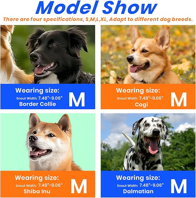 - PLEASE MEASURE BEFORE BUYING:Measure both snout circumference and snout length before purchasing. If your dog's snout length exceeds the size range by about 1 inch, choose the next size up. For long-snout breeds like Dobermans, make sure the snout length fits as well.