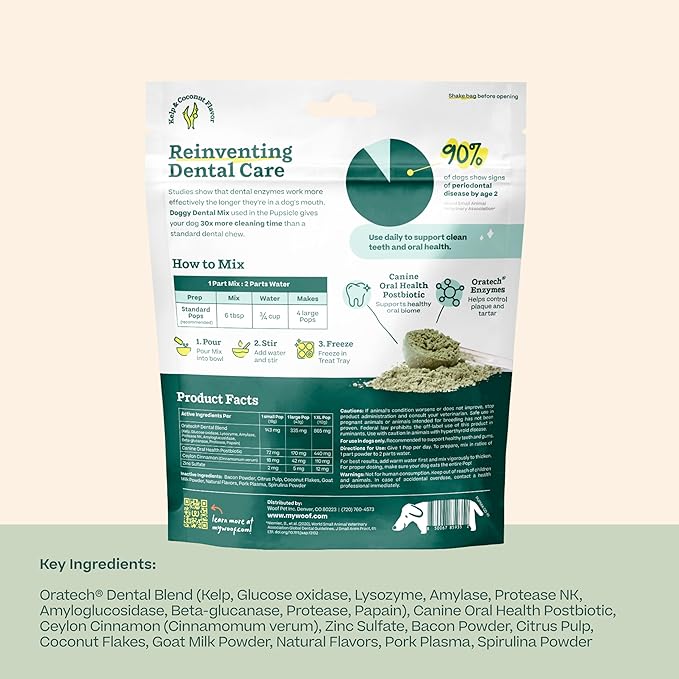 Woof Doggy Dental Pupsicle Mix - Dog Teeth Cleaning Powder for The Pupsicle - Long Lasting Postbiotic Dental Enzyme Mix to Support Oral Health for Dogs
