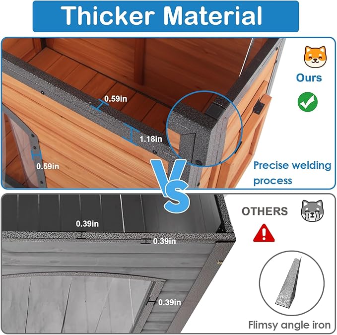 - All-Weather Durability: Sturdy metal frame + slanted waterproof roof prevents rain/snow buildup. Elevated base keeps interior dry and resists ground moisture, rot, and pests