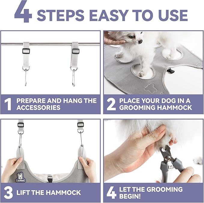 - 【 EASY TO USE AND POWERFUL 】With our hammock and accessories, you can groom your puppy at home and complete the same work as a pet hospital manicure, grooming, eye and ear care and more! No more agonizing over manicures with your pet, not to mention spending extra time and money.