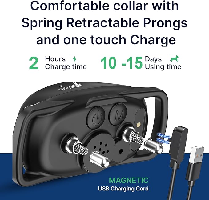 - Made for all types of Dogs:- Small, Medium and Large with fully adjustable strap suitable for Dog Neck circumference sizes of 8”-25” (20-63.5Cm). Take Note : Suitable for dogs older than 6 Months weighing 8-150 Lbs (3.7-68 kg) and not for use with very aggressive dogs. It comes with unique retractable Spring Prongs making it comfortable and safe for your dogs to wear
