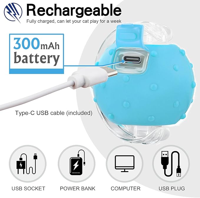 - Bird Chirping & Interesting Tail for Hunting - This automatic cat ball has realistic bird sounds, which can attract cats to be interested in this bird chirping cat toy and trigger their hunting instincts. The elastic tail accessory moves rapidly along with the ball, making your cat think it is an agile mouse and go crazy for it. Perfect hunting toy for cat. In the package, we have included two different tail accessories for your convenience of replacement.