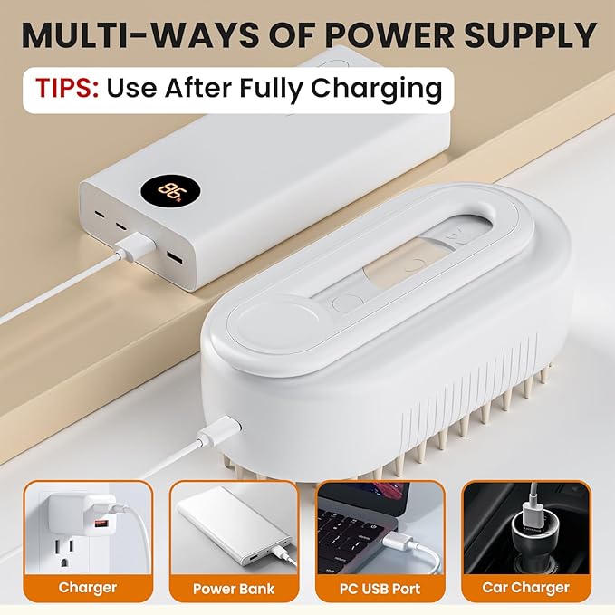- 🐱【Premium Safety & Durability】Crafted with reinforced ABS and food-grade silicone, this cat steam brush ensures gentle yet effective grooming. The triple anti-scalding protection and soft TPR massage bristles stimulate follicles and improve blood circulation. Its quiet operation ensures your pet stays calm and relaxed, turning every grooming into a soothing experience.