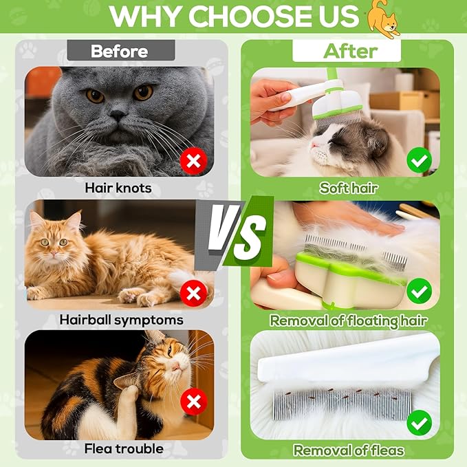 - Promotes Healthy, Shiny Coats:This cat comb is a must-have tool recommended by pet groomers to minimize shedding and promote healthy shiny coats. Its massage function stimulates blood circulation, increases natural oil secretion and improves your pet's health. It helps you detect your pet's skin problems at an early stage and perform regular grooming, which not only cleans up dandruff and dust, but also promotes hair growth and makes your pet's coat shinier, bringing health and happiness to you and your pet.