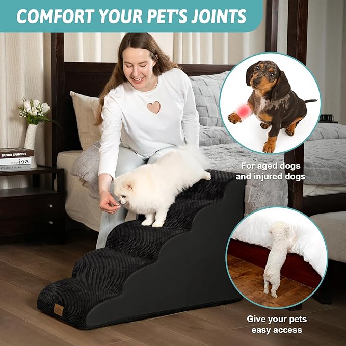 Dog Stairs for High Bed 22.6" H, Small Dog Step for Puppy, Older or Cat, Curved Ramp for Car, Ladder with High Density Foam, Lightweight, Durable, 15.7x33x22.6 inch, 5 Step, Black