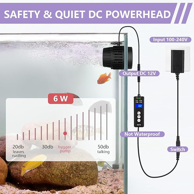 - Safety DC Pump:With a DC 12V 6W powerhead, the max flow rate up to 792 GPH, it provides plenty of flow while remaining quiet. Also comes with a hard cover for the intake to prevent small fish and anemones from getting sucked in