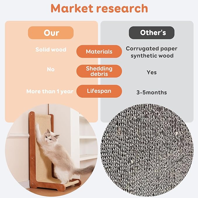 - 【Premium Cat Scratching Post & Board Combo】Solid wood frame wrapped in natural sisal creates an ultra-durable cat scratching post and scratch pad for cat, protecting furniture from destructive claws. Ideal for indoor cats seeking daily scratching therapy!