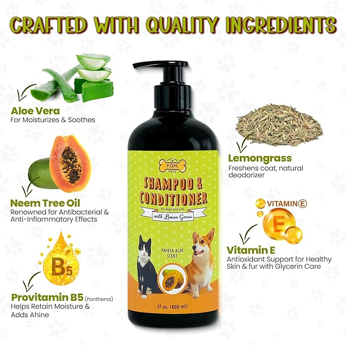 - "EASY 2-IN-1 GROOMING FOR DOGS & CATS: Simplify bath time with this convenient dog shampoo, combining cleaning and conditioning in one effective step. Perfect for busy pet parents, It works as both dog shampoo and conditioner as well as organic cat shampoo and conditioner, making it great for both dogs and cats care."