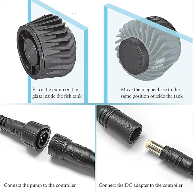 - 【Super strong magnetic force】Can be used for 20cm/8Inch thickness fish tank wall.When installing the wave maker, turn off the power and install it underwater.