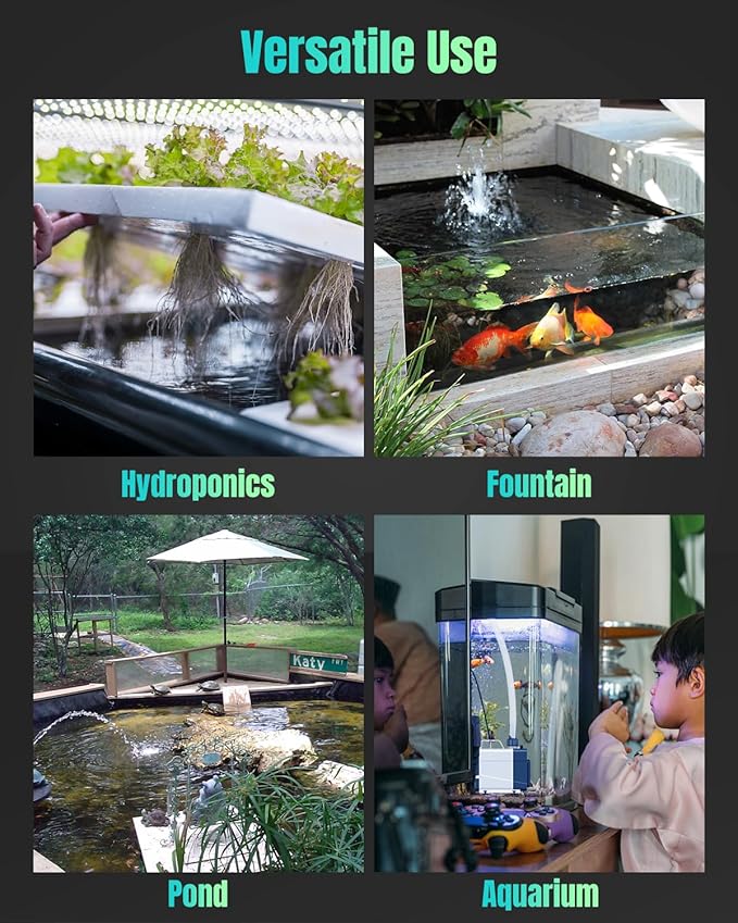 - For 20-50 Gallon Tanks: Measuring 3.3" L x 2.2" W x 2.87" H, this water pump fits perfectly in 20-50 gallon freshwater and saltwater tanks. Great for aquariums, tabletop fountains, pet water dispensers, bird baths, and other water features