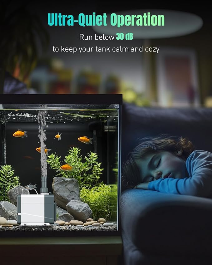 - Powerful & Energy-Saving: Driven by a high-performance titanium rotor and a robust ceramic shaft, it generates strong, steady flow to boost water movement and oxygenation. Perfect for creating a healthy, oxygen-rich habitat for your fish