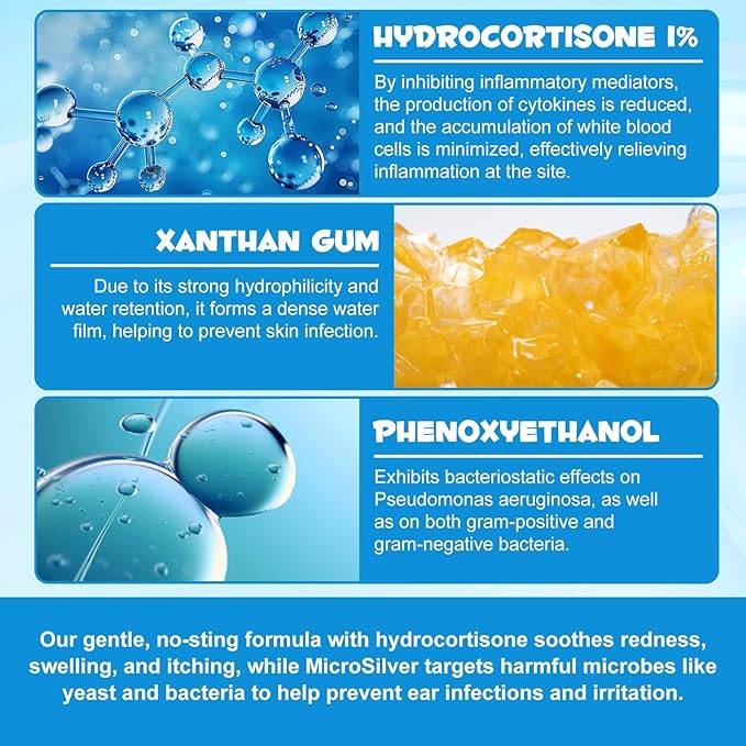 - 1% Hydrocortisone For Cat & Dog Ear Care : The Cat & Dog Ear Cleaning Drops of 1% Hydrocortisone helps reduce redness, swelling, and itching, ensuring your pet feels more comfortable and helps reduce risk of infection