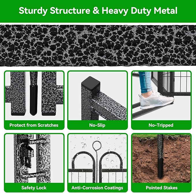 - 【Anti-Rust Coatings Material】Kfvigoho puppy playpen made of heavy-duty metal, sturdy and durable, steel wire smooth and solid, pet dogs couldn't damage or chew it, anti-corrosion coatings and rust-proof process helps panels works well outdoor and extend its life, the indoor and outdoor dog pen great for people with dogs