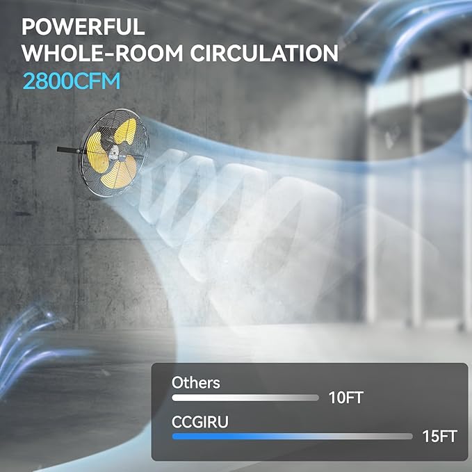 - 180° Tilt Airflow Control: Achieve the better cooling with this wall mounted fan's 180° vertical tilt feature, allowing you to direct the airflow precisely where it's needed. You can enjoy the versatile air circulation for all-season comfort