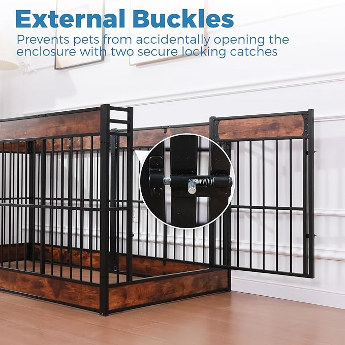 - 【Sturdy Construction】 Our puppy enclosure is made of durable metal pieces and wood, which increases the service life and durability, strong and durable, not easy to be damaged by small pets. It also adds beauty and can be better integrated with your decoration. The rounded edges are designed to prevent pets from being scratched and keep our pets safe.
