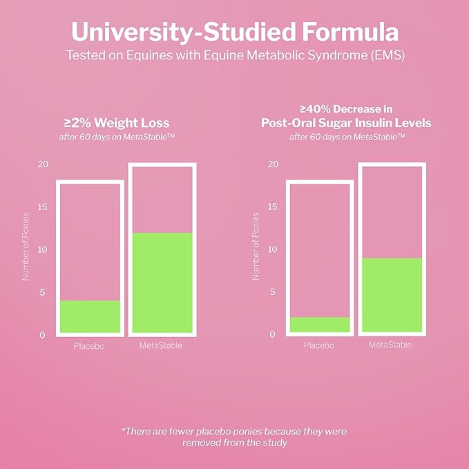 - VETERINARY & UNIVERSITY-STUDIED FORMULA – MetaStable Pellets are backed by research to support horses with Equine Metabolic Syndrome. They were shown to stabilize insulin levels and promote progress towards a healthy weight in just 60 days.