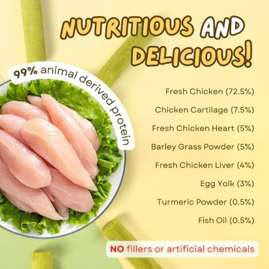 Primeco Cat Grass Teething Stick, Natural Grass Molar Rod Made of Chicken & Cat Grass, 6 PCS Per Bag for Cat Indoor Teeth Cleaning, Hairball Removal, Dental Care, Increase Appetite (6 pcs)